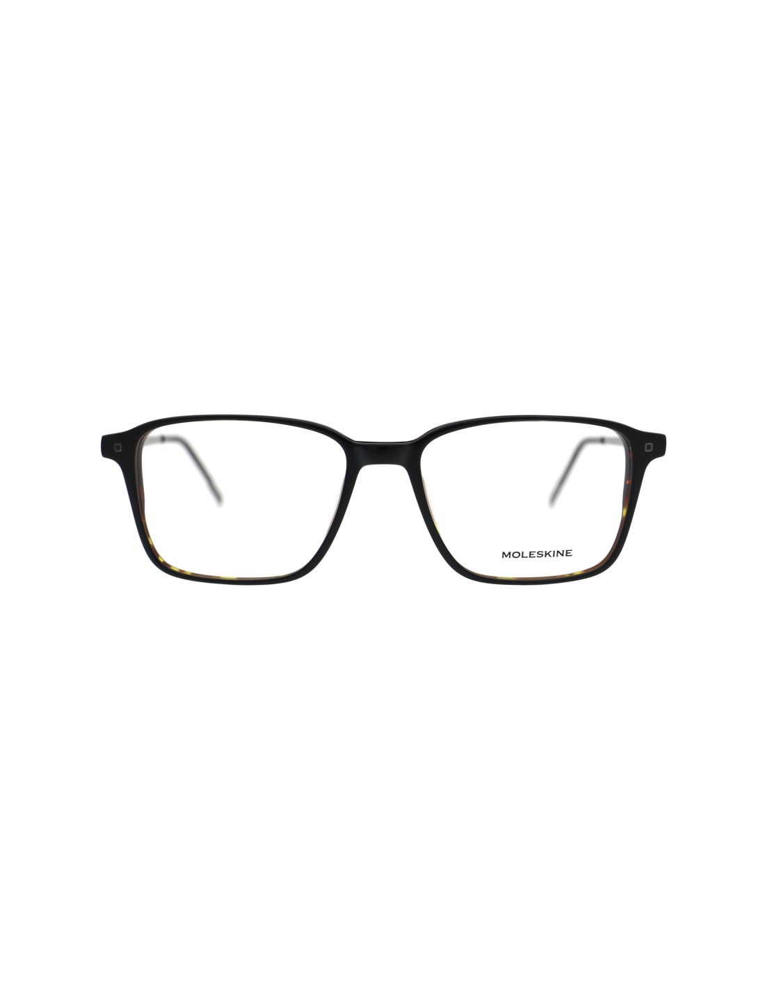 Occhiale maschile di forma rettangolare, combinato con nuove aste in acciaio e ampio frontale in acetato