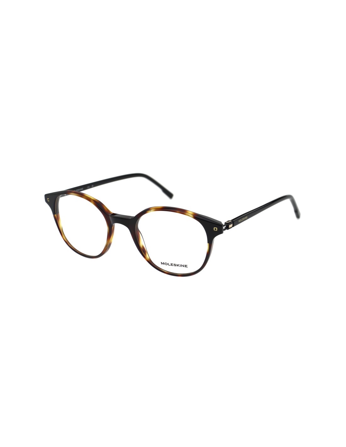 Forma large squadrata e spigolosa femminile, in acetato riciclato con incollati  “biobased” (35% da acetati riciclati e 40% da cellulosa naturale). Asta in acetato “biobased” con un nuovo fregio a renderla sempre più chiaramente Moleskine