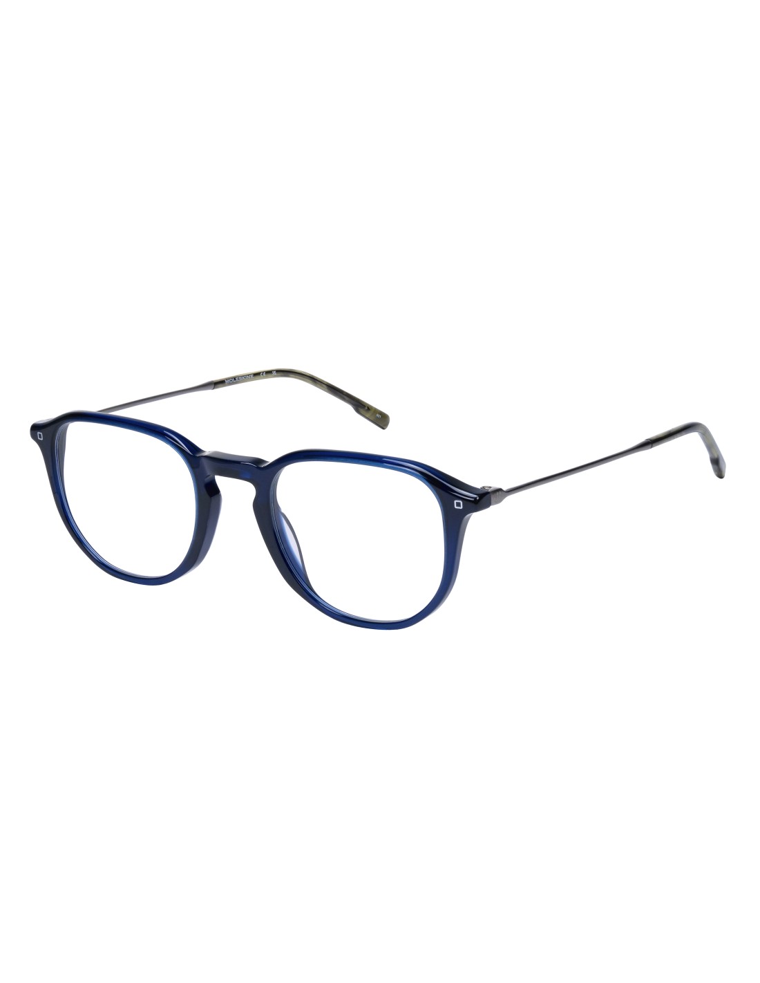 Un'elegante forma maschile con ponte a chiave e aste di nuova generazione. Acetati bio per frontale e terminali e acciaio ipoallergenico nelle aste.